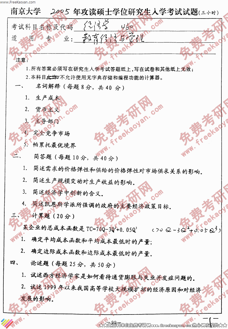 专业课考研经验 本站小编 FreeKaoyan 2018-01-22南京大学2005年考研真题-教育学和运动生理学总