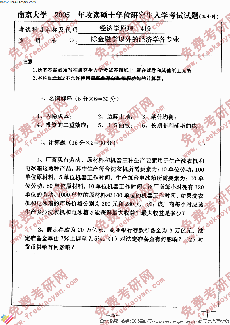 专业课考研经验 本站小编 FreeKaoyan 2018-01-22南京大学2005年考研真题-经济学