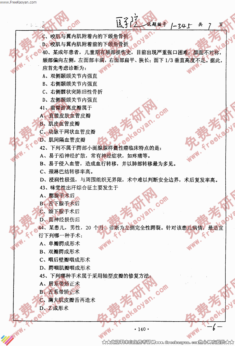相关话题/南京大学 考研真题 口腔综合