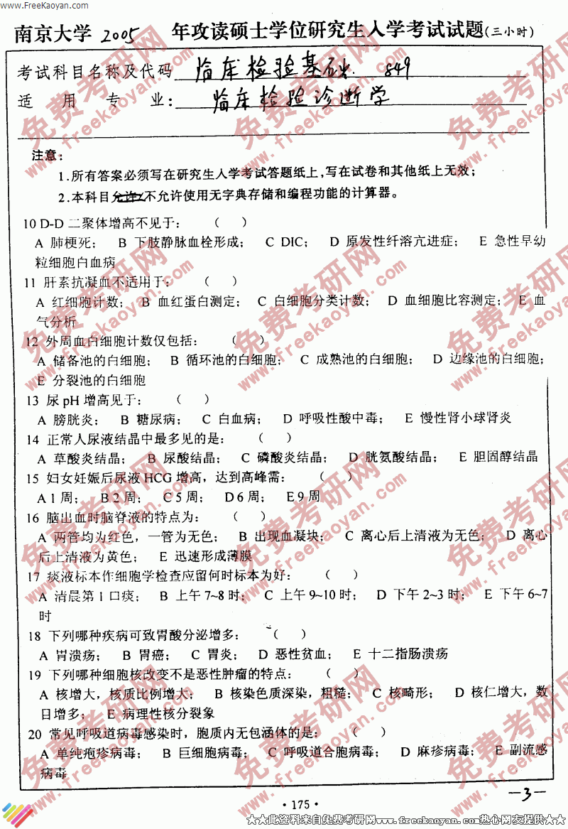 专业课考研经验 本站小编 FreeKaoyan 2018-01-22南京大学2005年考研真题-口腔综合学