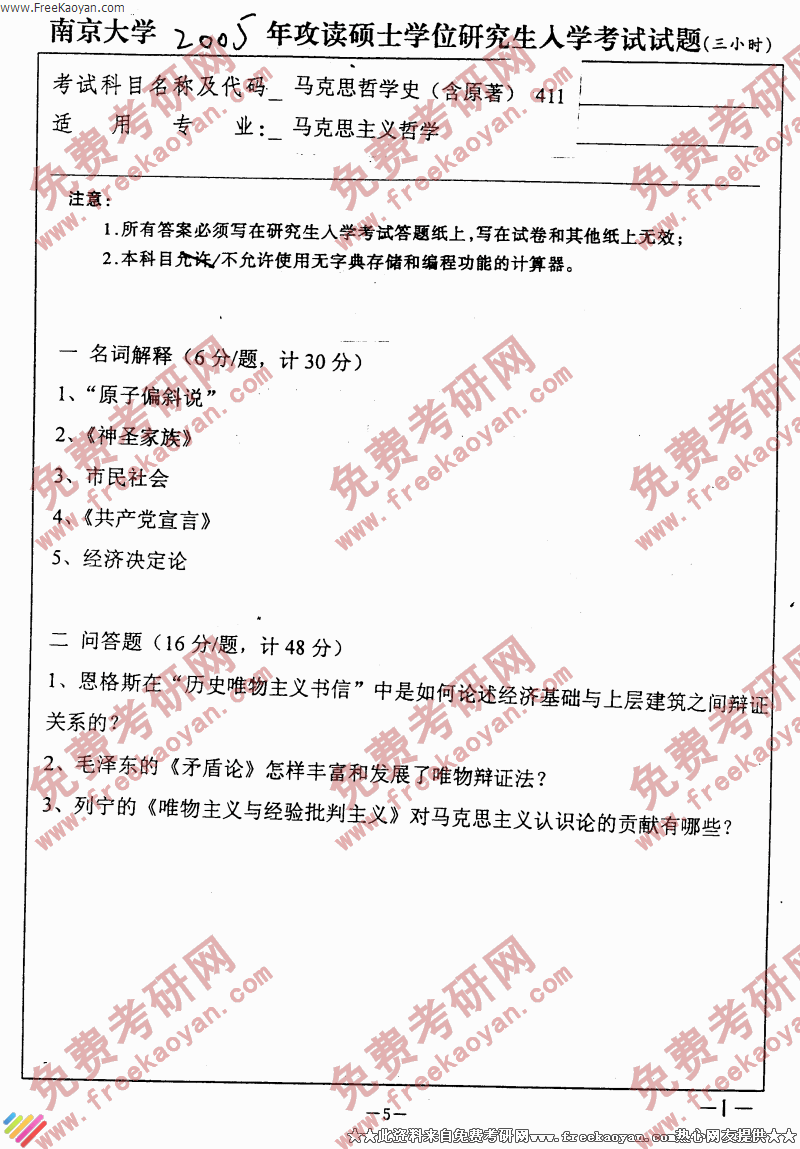 专业课考研经验 本站小编 FreeKaoyan 2018-01-22南京大学2005年考研真题-矿床学