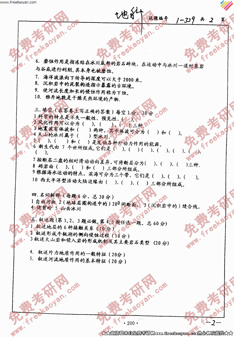 相关话题/南京大学 考研真题 普通地质学