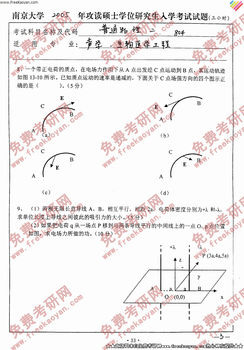 专业课考研经验 本站小编 FreeKaoyan 2018-01-22南京大学2005年考研真题-普通物理