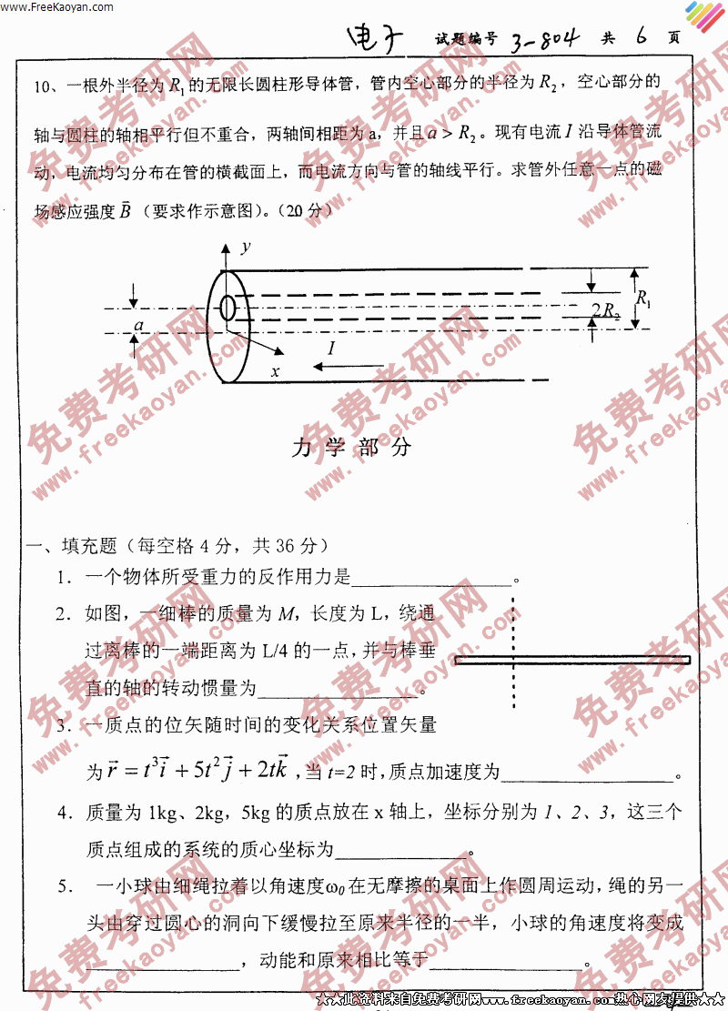 专业课考研经验 本站小编 FreeKaoyan 2018-01-22南京大学2005年考研真题-普通物理