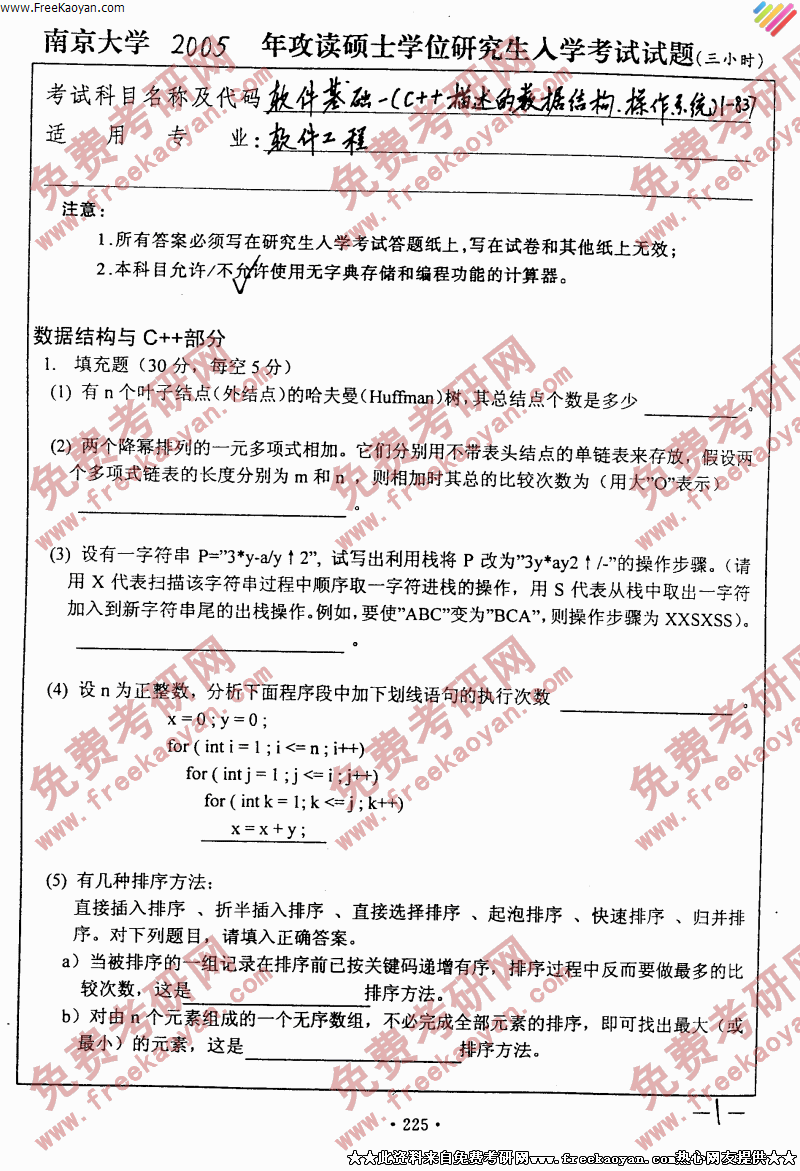 专业课考研经验 本站小编 FreeKaoyan 2018-01-22南京大学2005年考研真题-民商法学综合