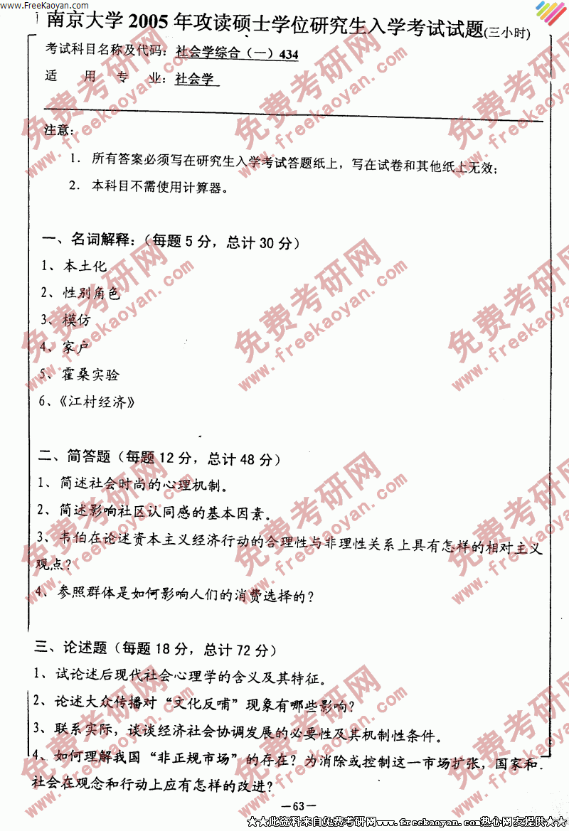 相关话题/考研真题 南京大学 综合 社会学
