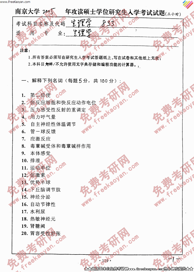 专业课考研经验 本站小编 FreeKaoyan 2018-01-22南京大学2005年考研真题-普通动物学