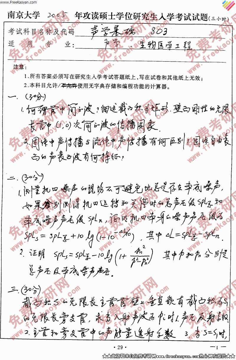 专业课考研经验 本站小编 FreeKaoyan 2018-01-22南京大学2005年考研真题-普通物理