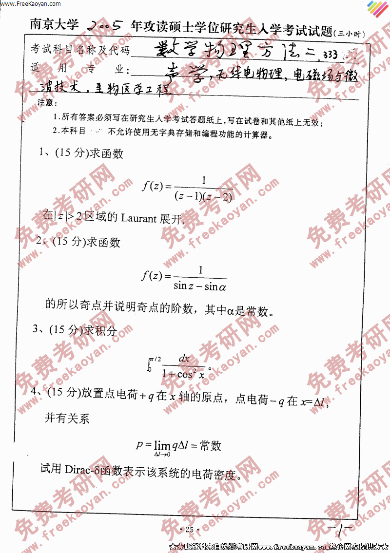 相关话题/数学 考研真题 南京大学 物理 方法