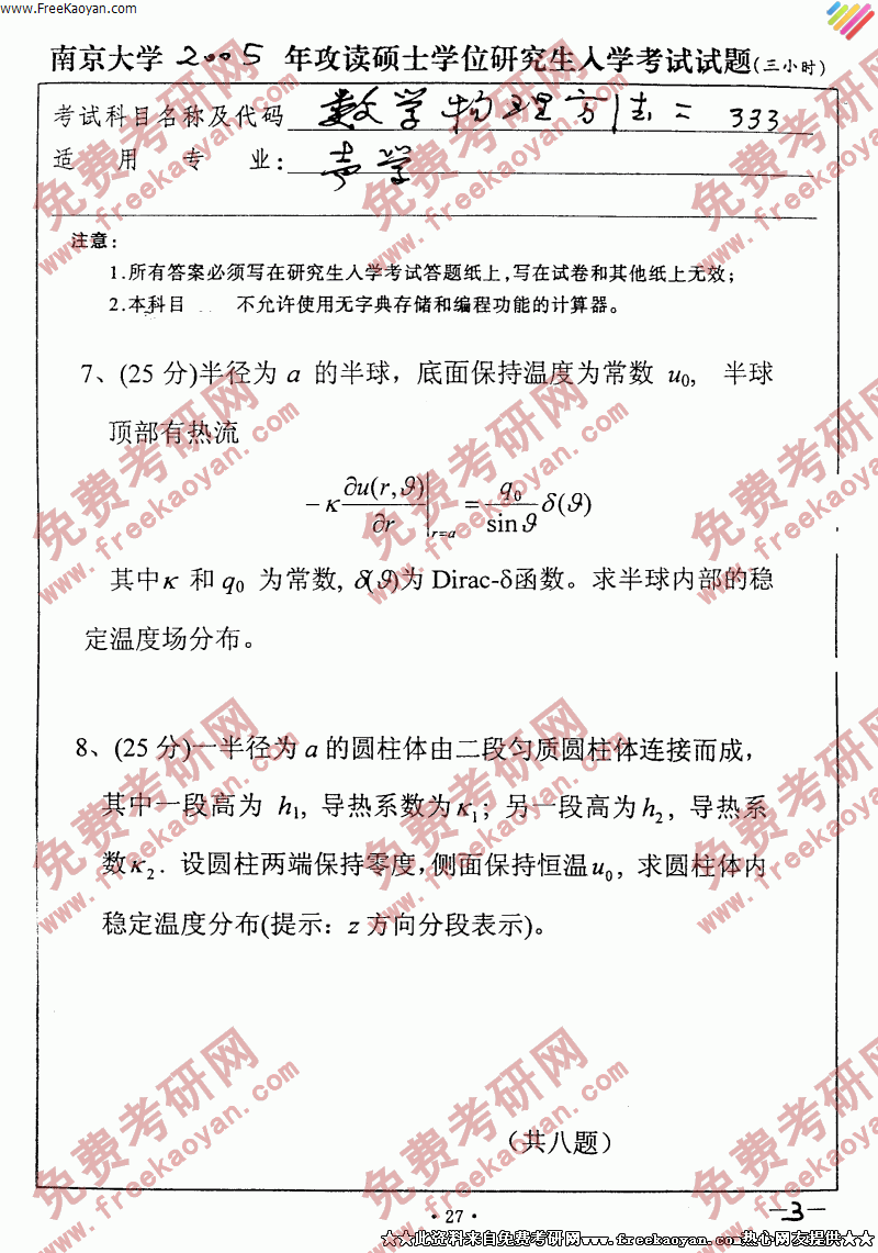 相关话题/数学 考研真题 南京大学 物理 方法