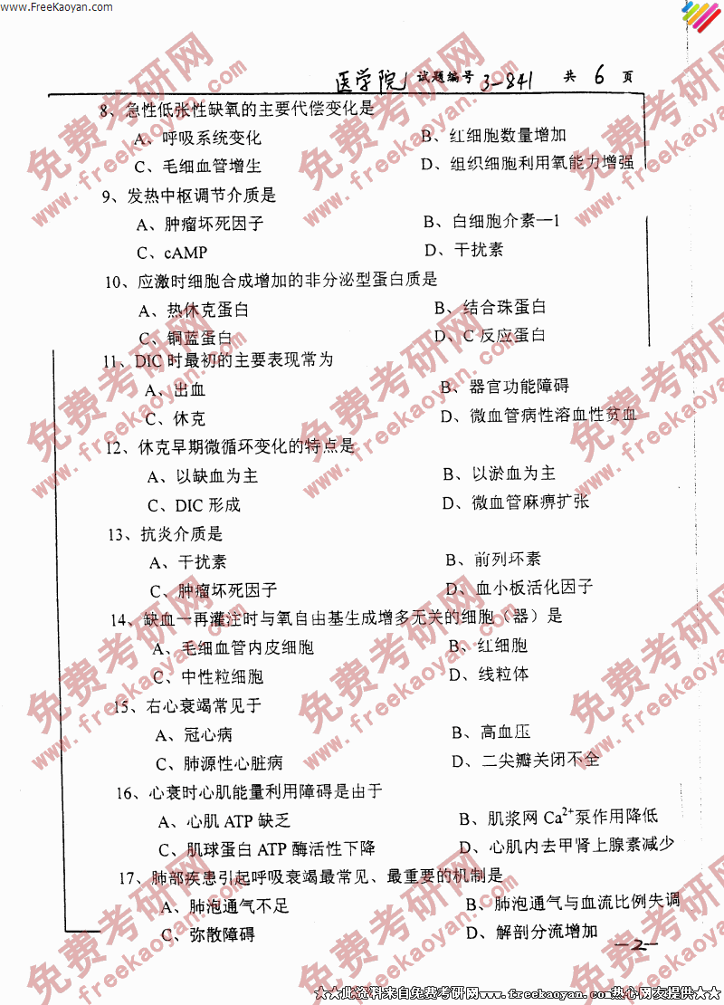 南京大学2006年考研真题-病理生理学(内科学,儿科学,神经病学,妇产科学,眼科学,耳鼻咽喉科学,麻醉学,急趁医学)(2)