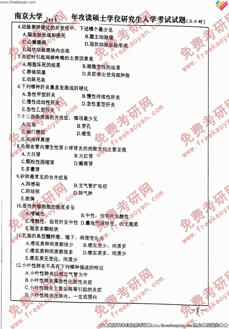 南京大学2006年考研真题-病理学(神经病与精神卫生学,影象医学与核医学,肿瘤学,口腔临床医学)(3)