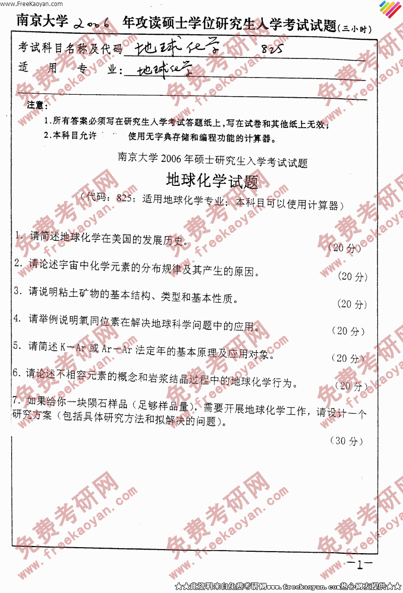 专业课考研经验 本站小编 FreeKaoyan 2018-01-22南京大学2006年考研真题-材料化学基础(材料系各专业)