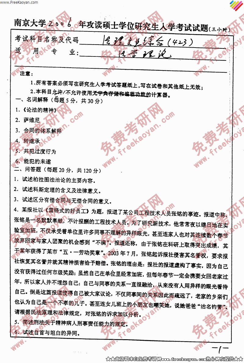 专业课考研经验 本站小编 FreeKaoyan 2018-01-22南京大学2006年考研真题-法理学