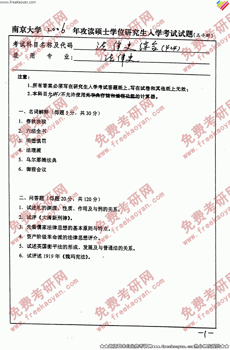 专业课考研经验 本站小编 FreeKaoyan 2018-01-22南京大学2006年考研真题-法理学