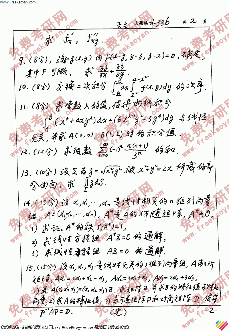 专业课考研经验 本站小编 FreeKaoyan 2018-01-22南京大学2006年考研真题-高等代数