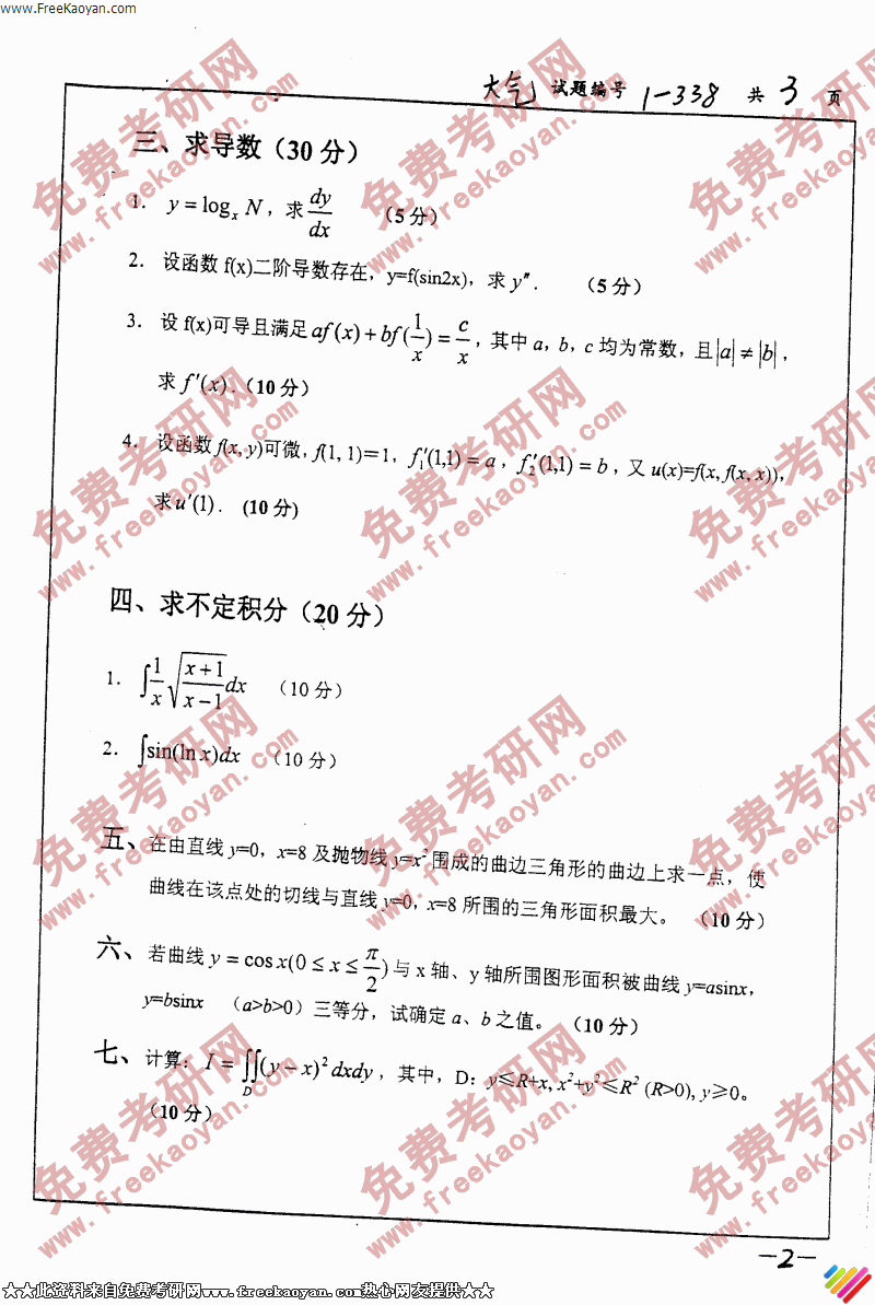 南京大学2006年考研真题-高等数学丙(2)