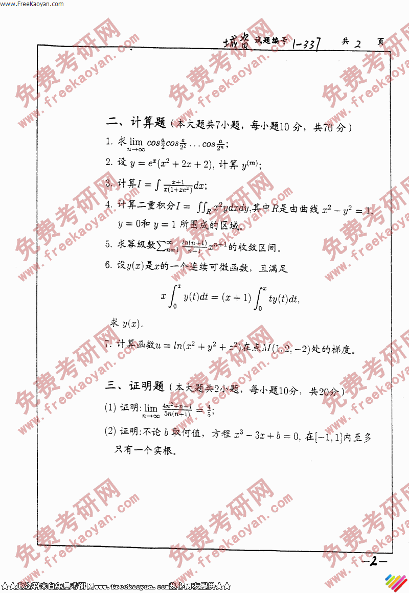 专业课考研经验 本站小编 FreeKaoyan 2018-01-22南京大学2006年考研真题-高等数学丙
