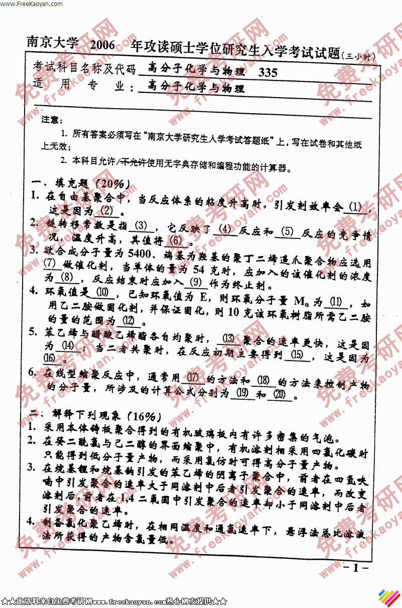 专业课考研经验 本站小编 FreeKaoyan 2018-01-22南京大学2006年考研真题-地球物理学(固体地球物理学)