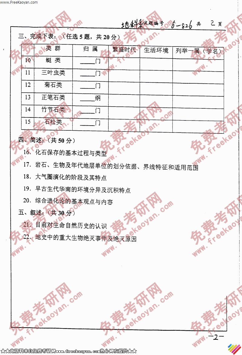相关话题/考研真题 史学 南京大学 地质学 古生物
