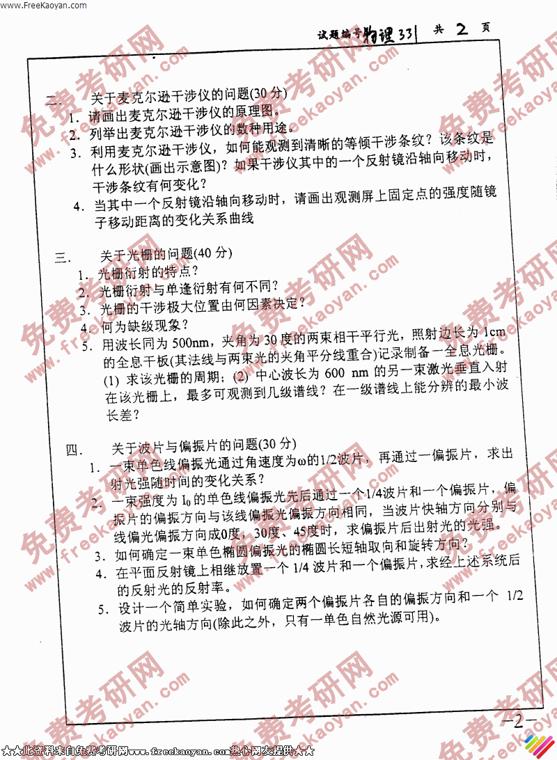 专业课考研经验 本站小编 FreeKaoyan 2018-01-22南京大学2006年考研真题-高分子化学与物理