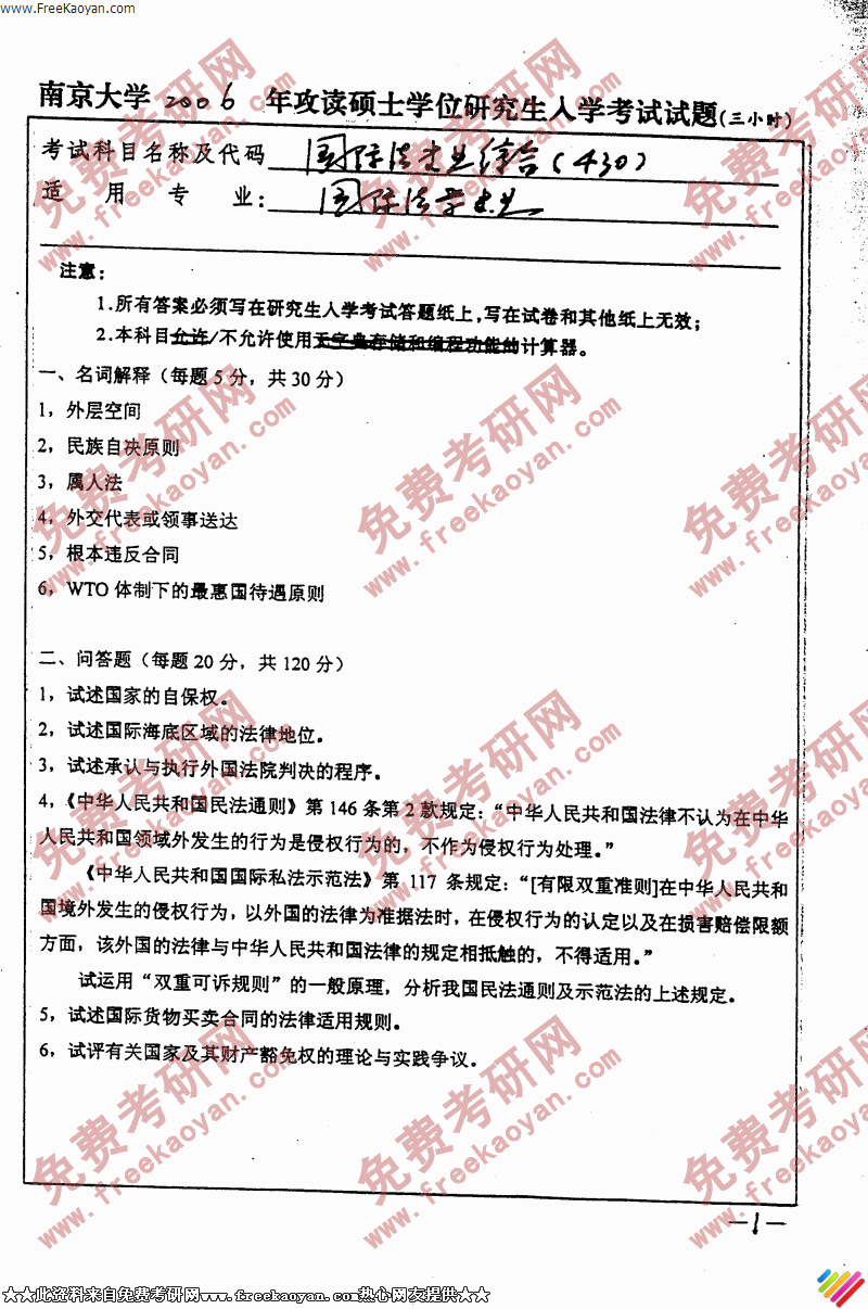 专业课考研经验 本站小编 FreeKaoyan 2018-01-22南京大学2006年考研真题-法理专业综合