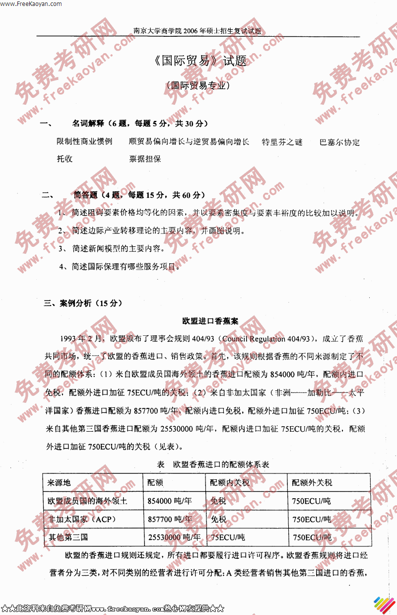 相关话题/考研真题 南京大学 复试 国际贸易