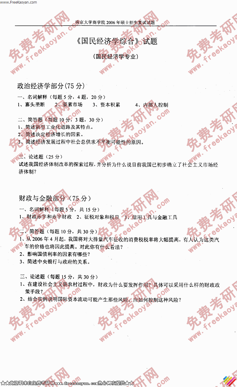 相关话题/考研真题 南京大学 国民经济学 复试 综合