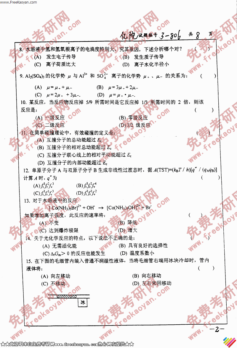 南京大学2006年考研真题-化学原理(含无机化学、物理化学(含结构化学)(2)
