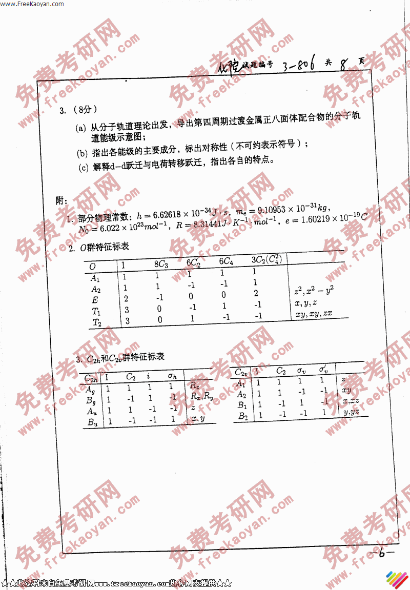 南京大学2006年考研真题-化学原理(含无机化学、物理化学(含结构化学)(6)