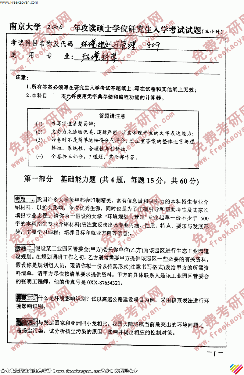 相关话题/考研真题 南京大学 管理 环境规划