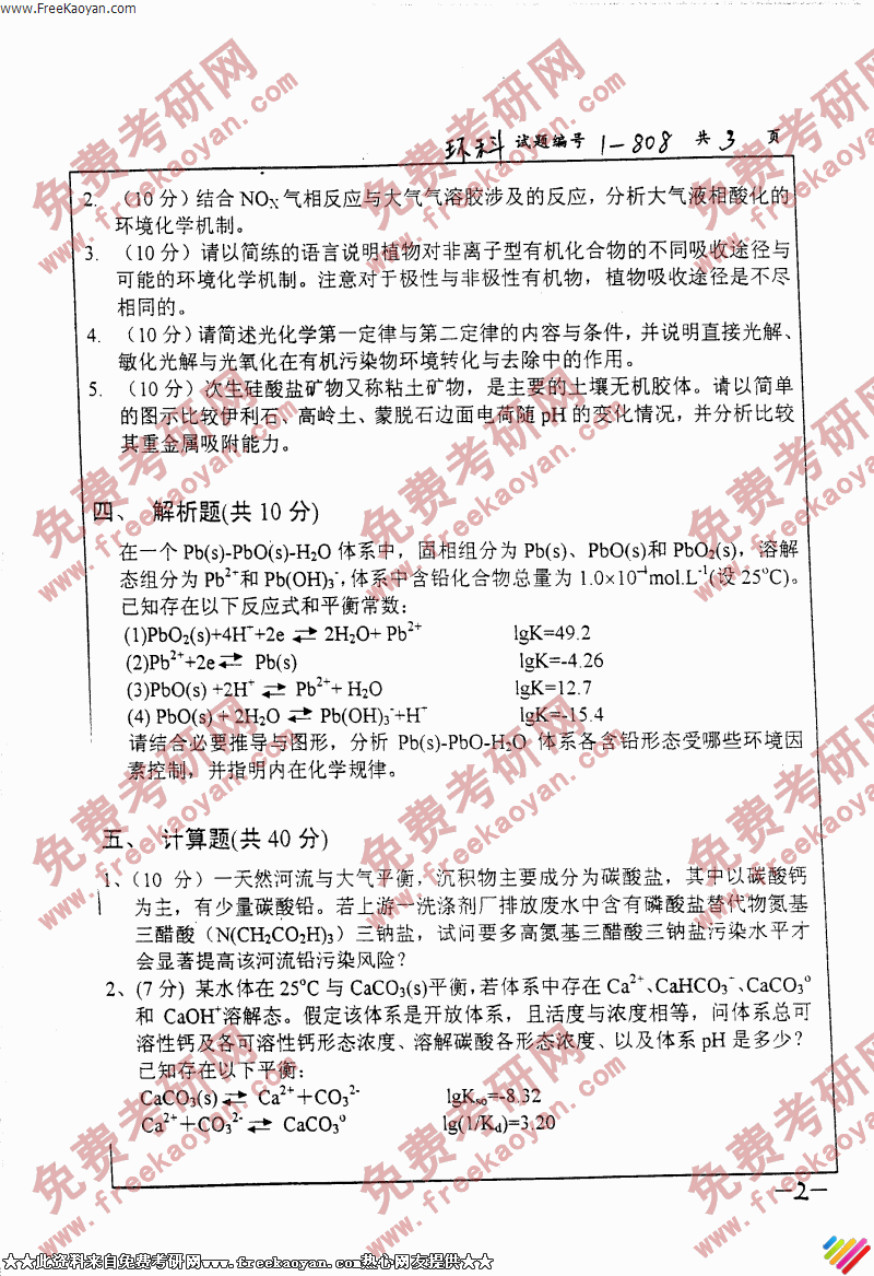 南京大学2006年考研真题-环境化学(2)