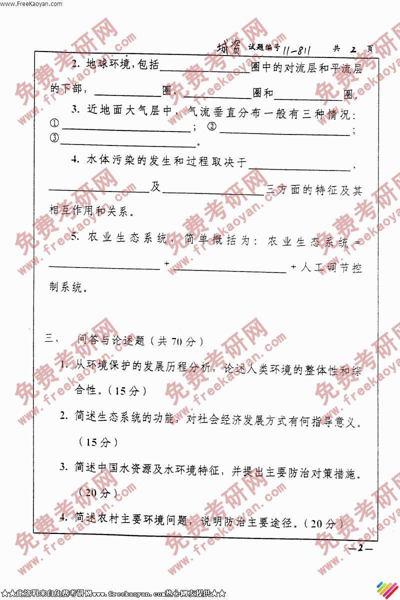 相关话题/考研真题 环境科学 南京大学 导论