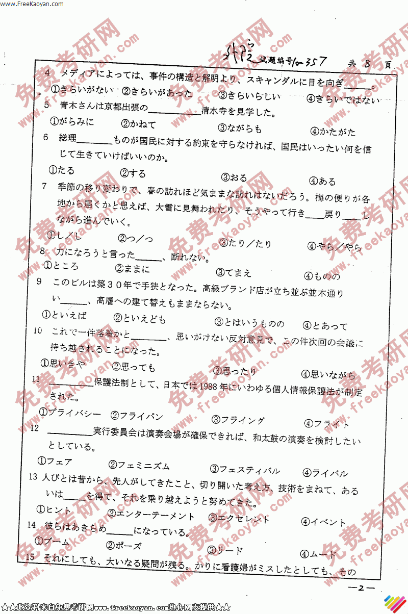 南京大学2006年考研真题-基础日语(2)