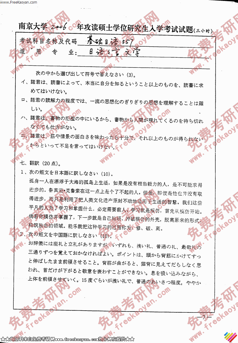 专业课考研经验 本站小编 FreeKaoyan 2018-01-22南京大学2006年考研真题-国际贸易复试