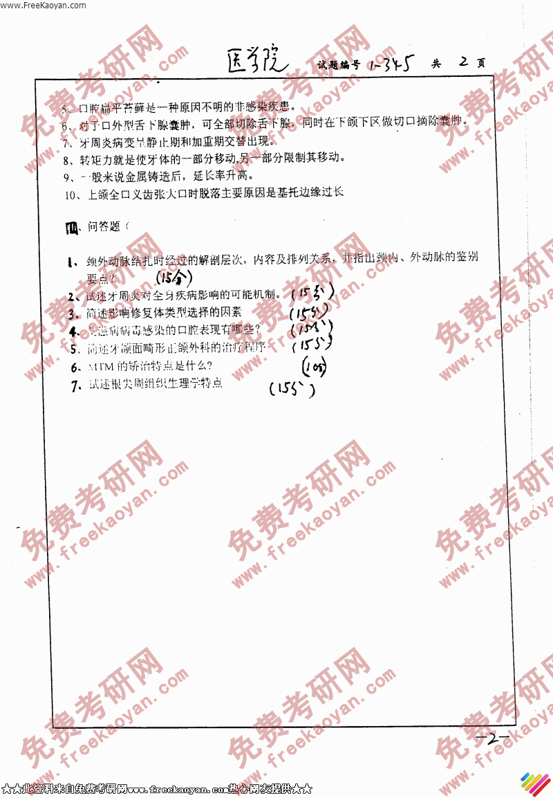 南京大学2006年考研真题-口腔综合学(口腔临床医学)(2)