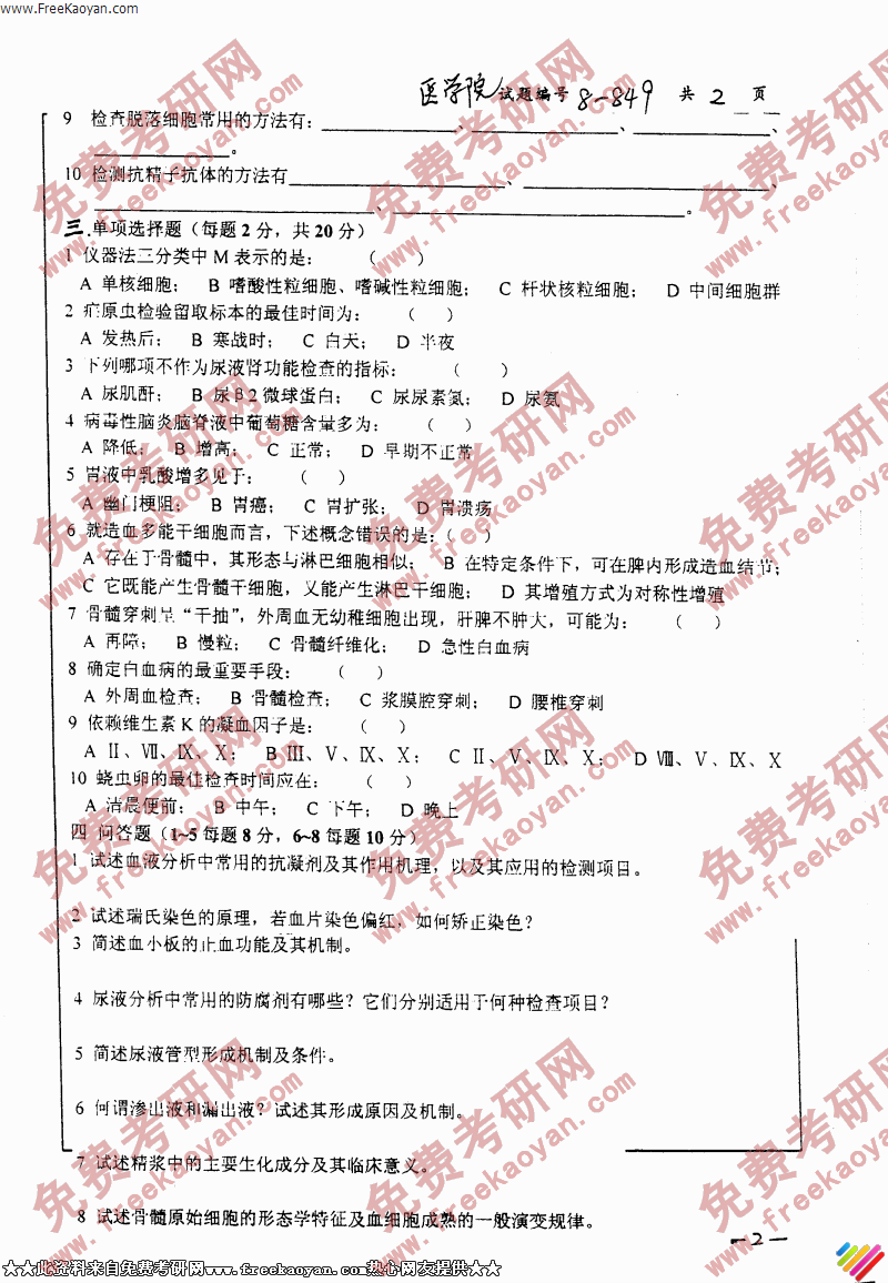 南京大学2006年考研真题-临床检验基础(临床检验诊断学)(2)