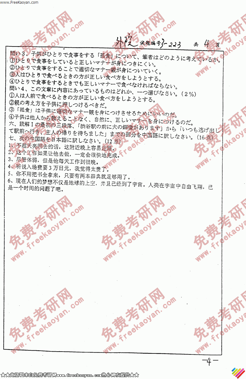 专业课考研经验 本站小编 FreeKaoyan 2018-01-22南京大学2006年考研真题-基础日语