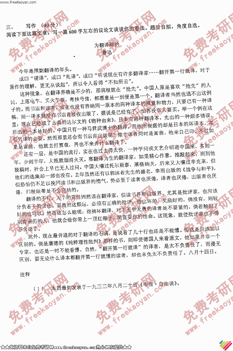 专业课考研经验 本站小编 FreeKaoyan 2018-01-22南京大学2006年考研真题-日语