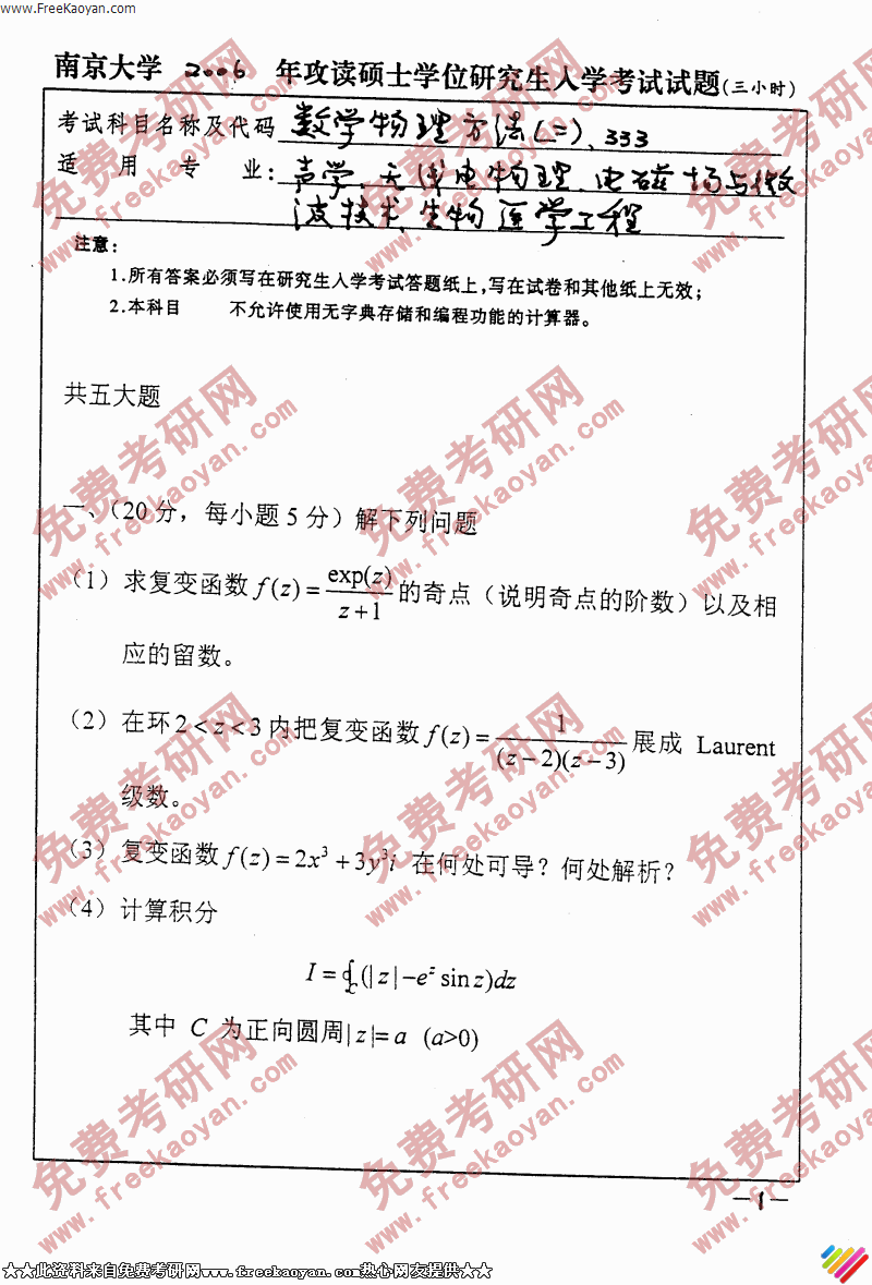 专业课考研经验 本站小编 FreeKaoyan 2018-01-22南京大学2006年考研真题-数学分析