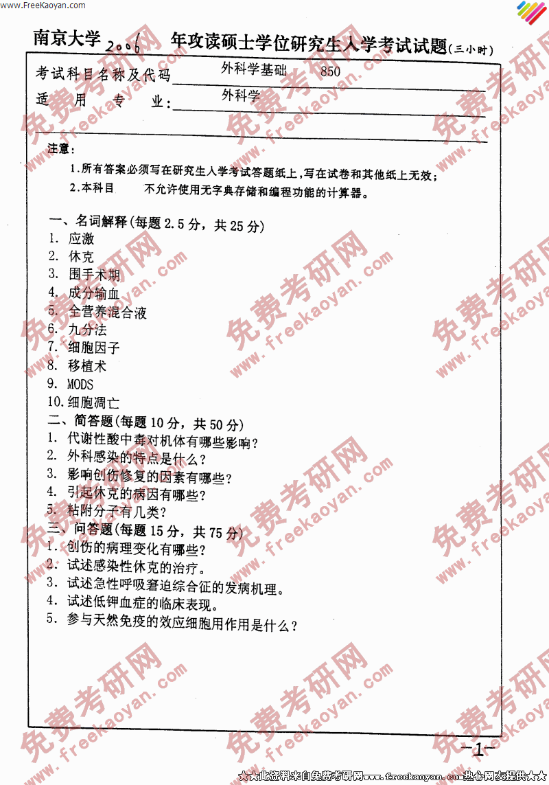 专业课考研经验 本站小编 FreeKaoyan 2018-01-22南京大学2006年考研真题-免疫学(免疫学,内科学)