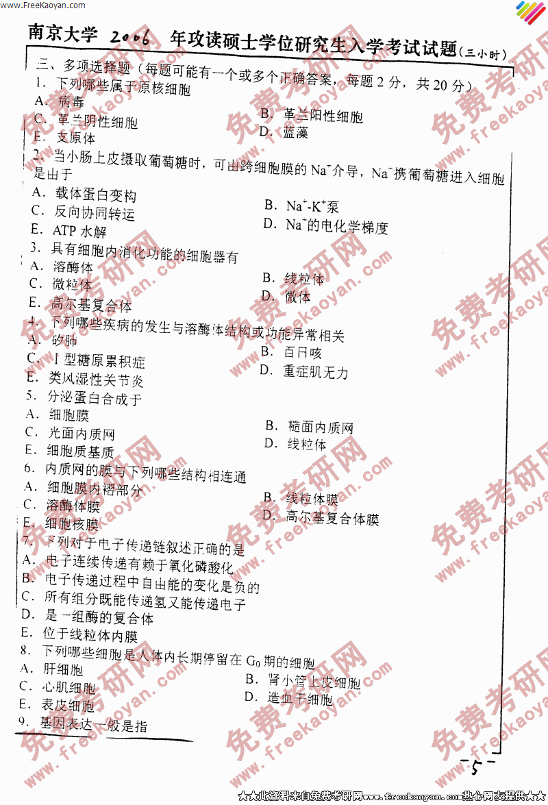 专业课考研经验 本站小编 FreeKaoyan 2018-01-22南京大学2006年考研真题-免疫学(免疫学,内科学)