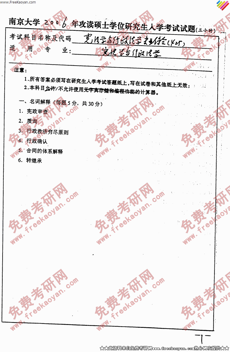 南京大学2006年考研真题-宪法学与行政法学专业综合