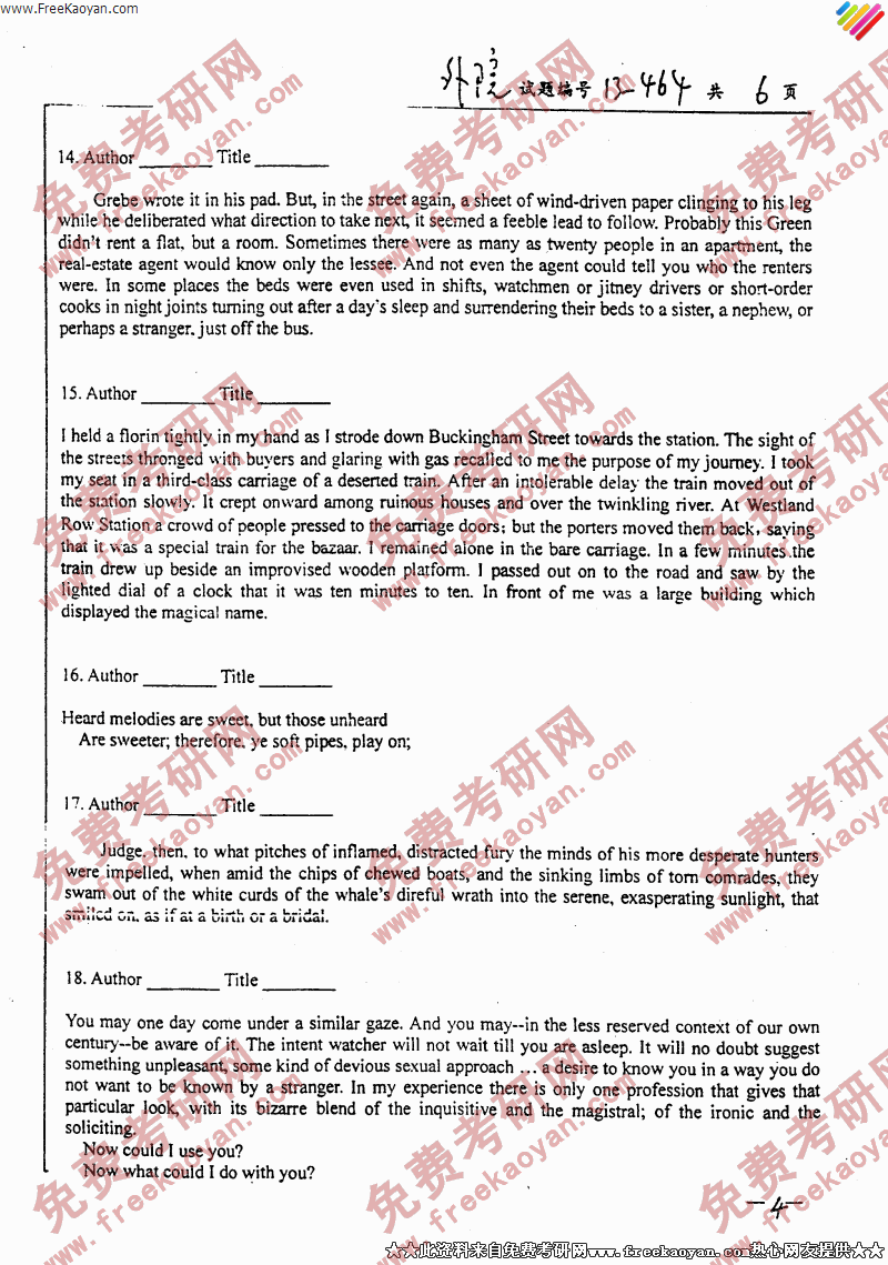相关话题/南京大学 考研真题 英美文学