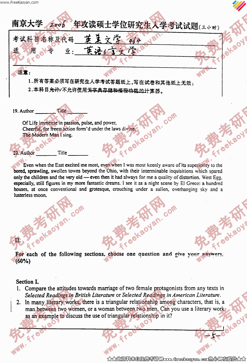 专业课考研经验 本站小编 FreeKaoyan 2018-01-22南京大学2006年考研真题-外国语学院英语系(英语综合能力)