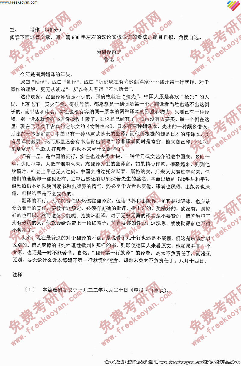 专业课考研经验 本站小编 FreeKaoyan 2018-01-22南京大学2006年考研真题-英美文学