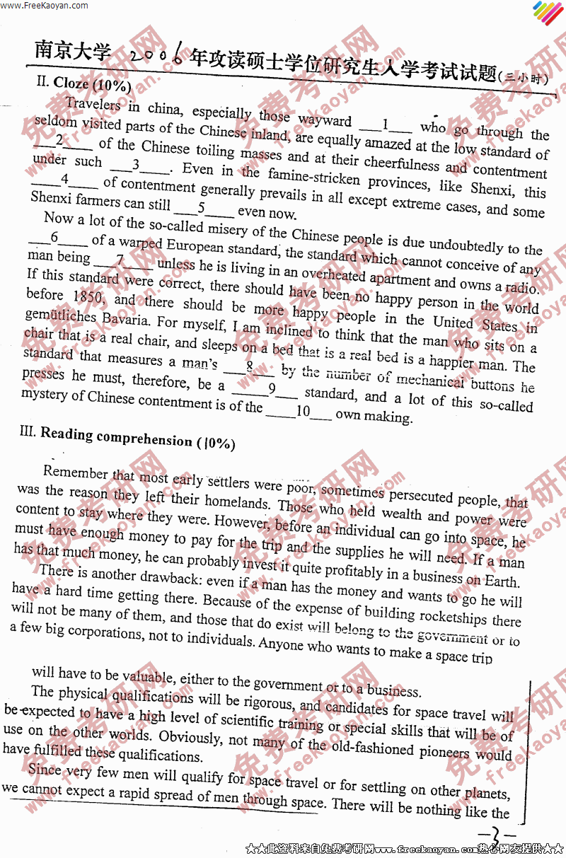 专业课考研经验 本站小编 FreeKaoyan 2018-01-22南京大学2006年考研真题-外国语学院英语系(英语综合能力)