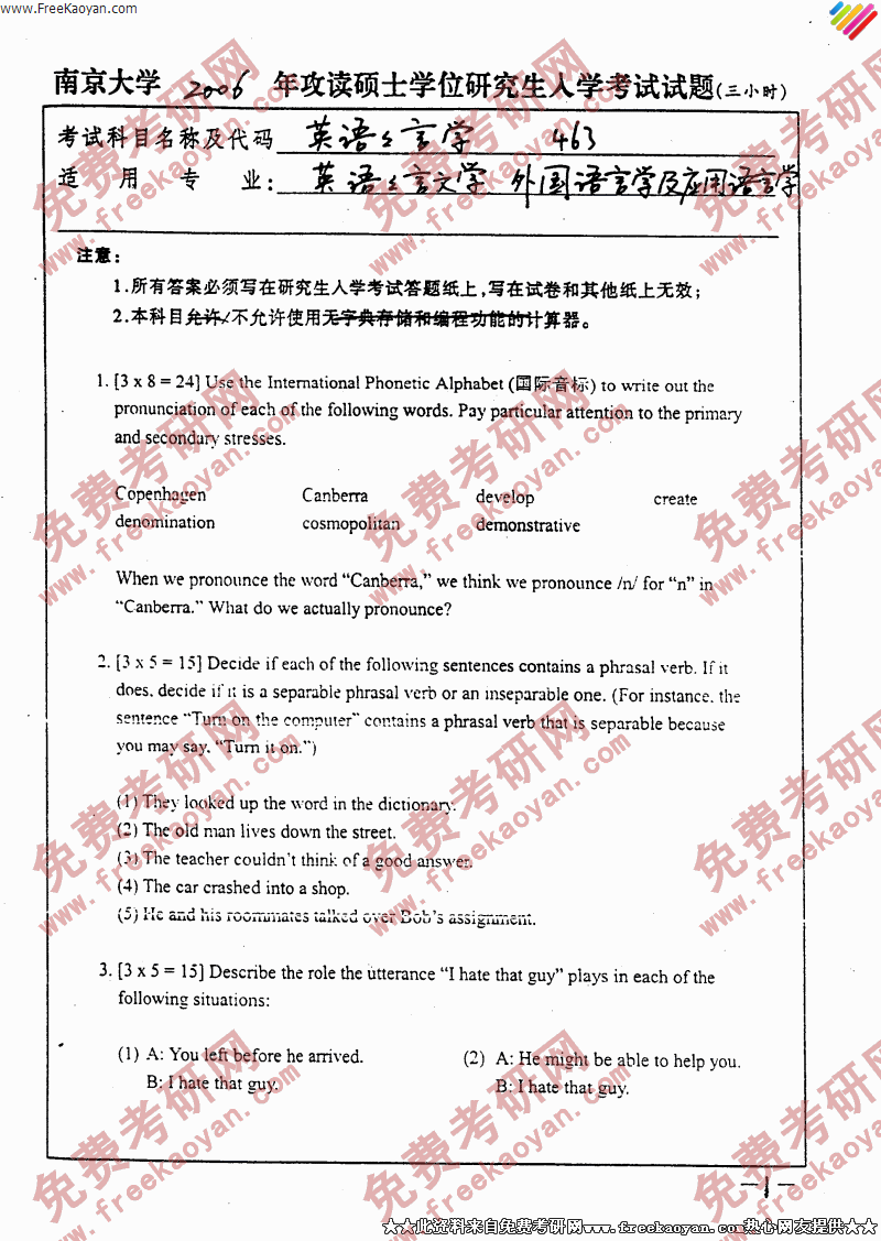 相关话题/英语语言文学 考研真题 南京大学 语言学及应用语言学 外国