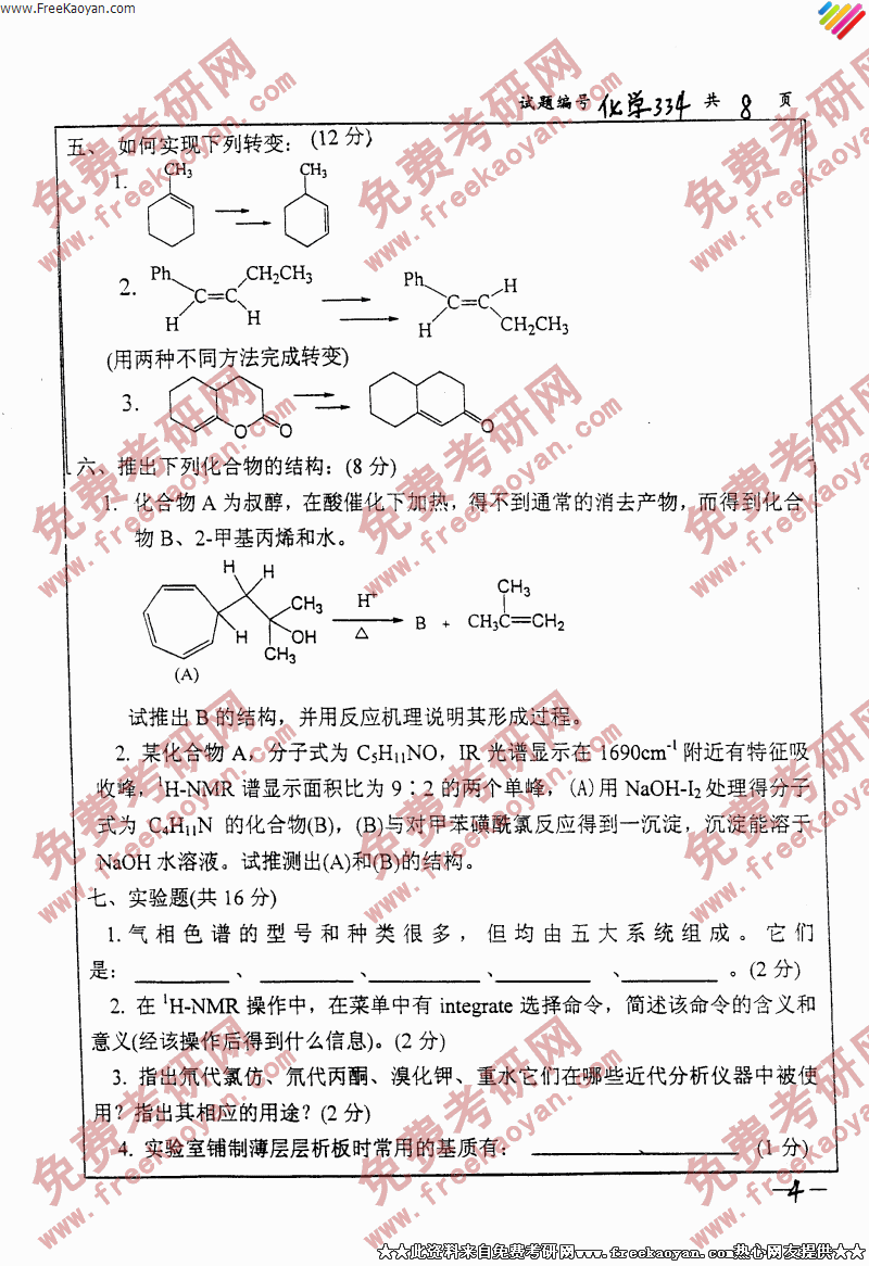 南京大学2006年考研真题-有机化学和仪器分析(4)