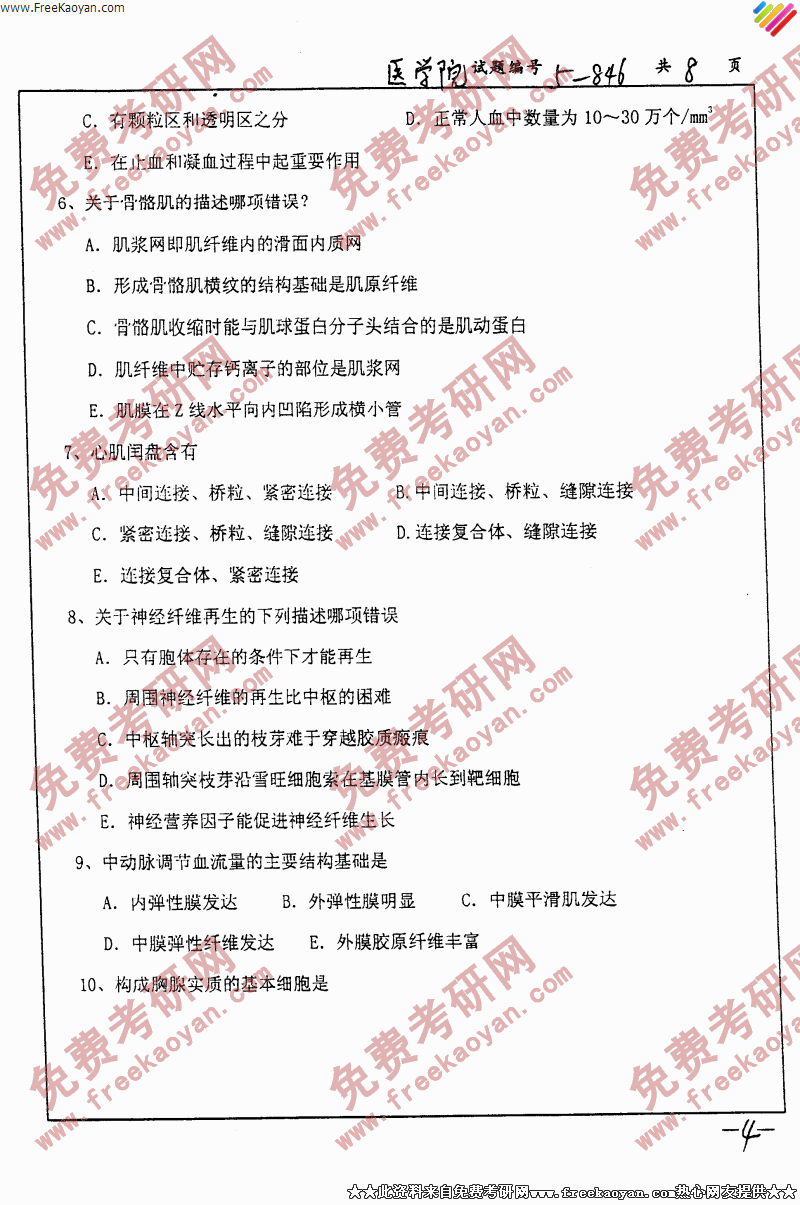 南京大学2006年考研真题-组织胚胎学(病理学与生理学)(4)